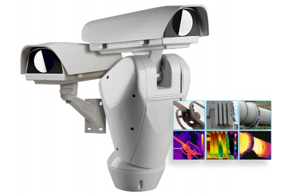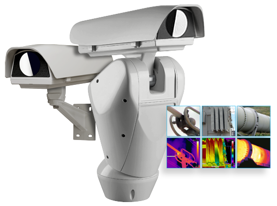 A dual camera provides users with both a thermal a visual view of remote sites and assets. Users can program the camera to patrol around to different locations to monitor assets for temperature readings and visualization. Readings are stored in the DVS database for analysis and input into condition based maintenance programs.